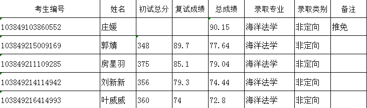 2019年廈門大學(xué)南海研究院擬錄取名單