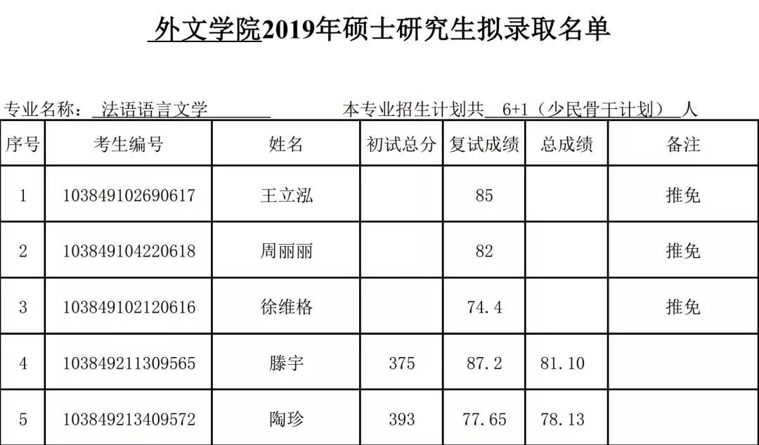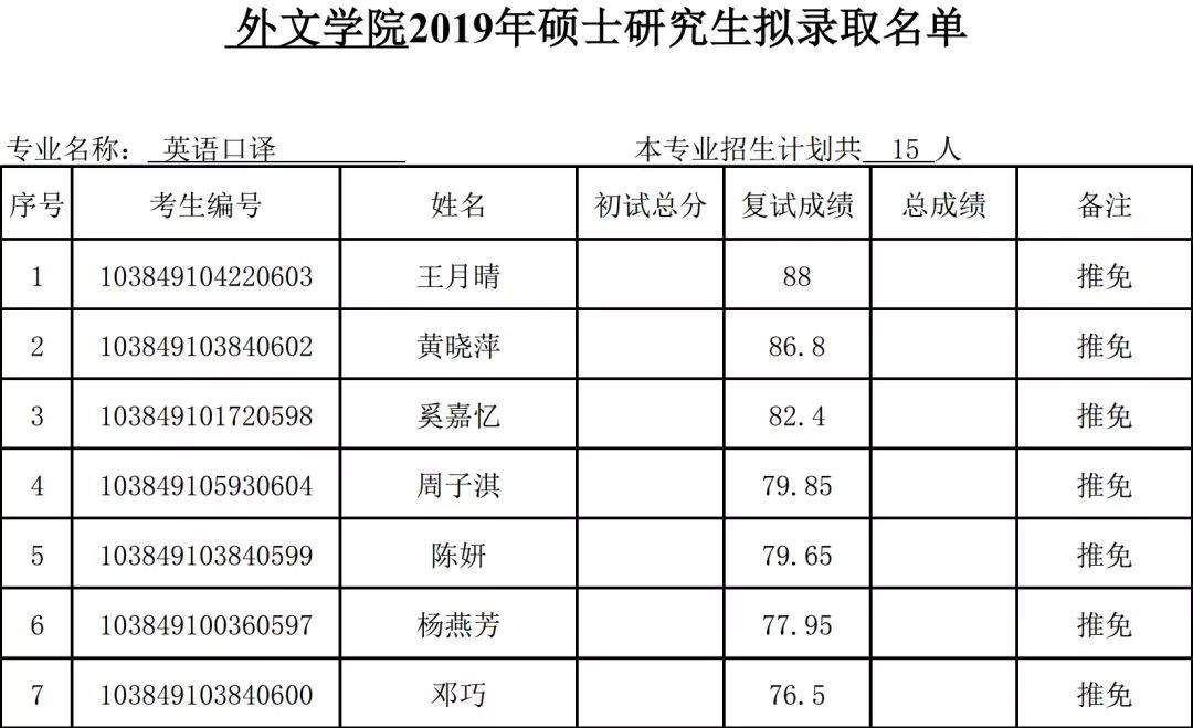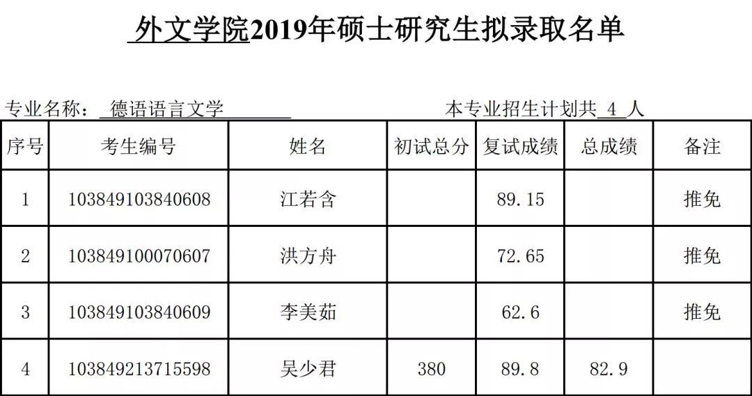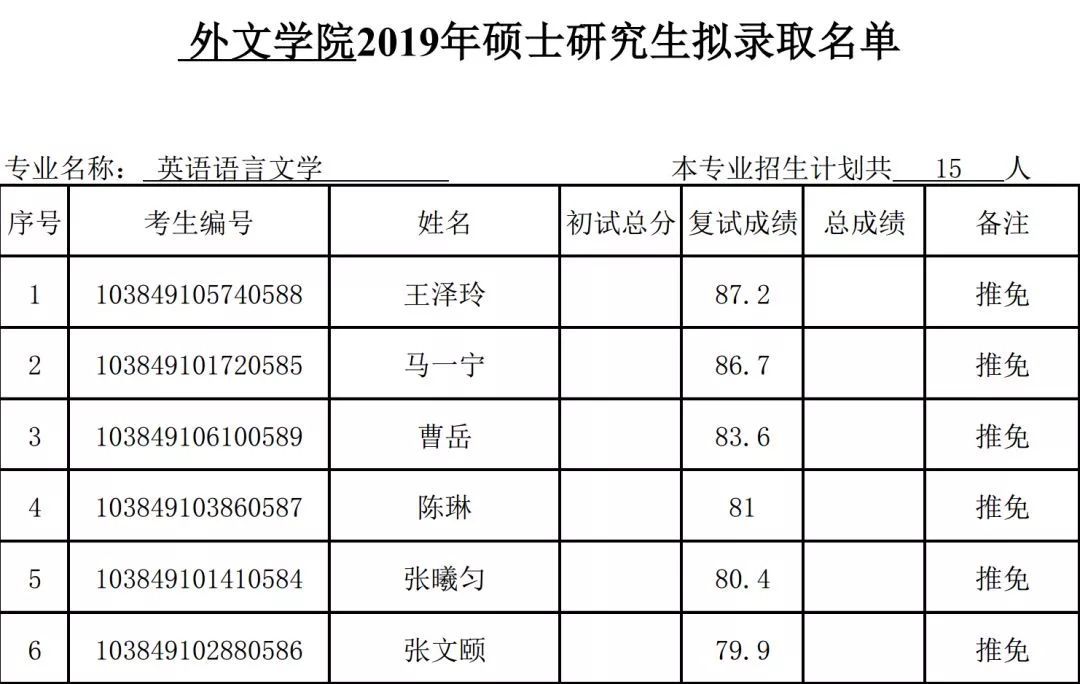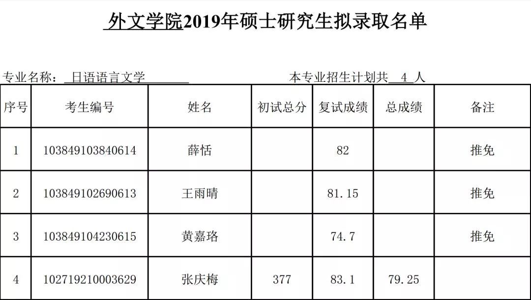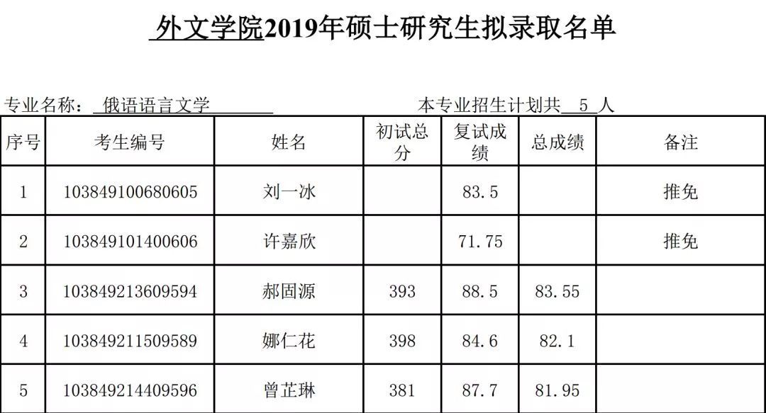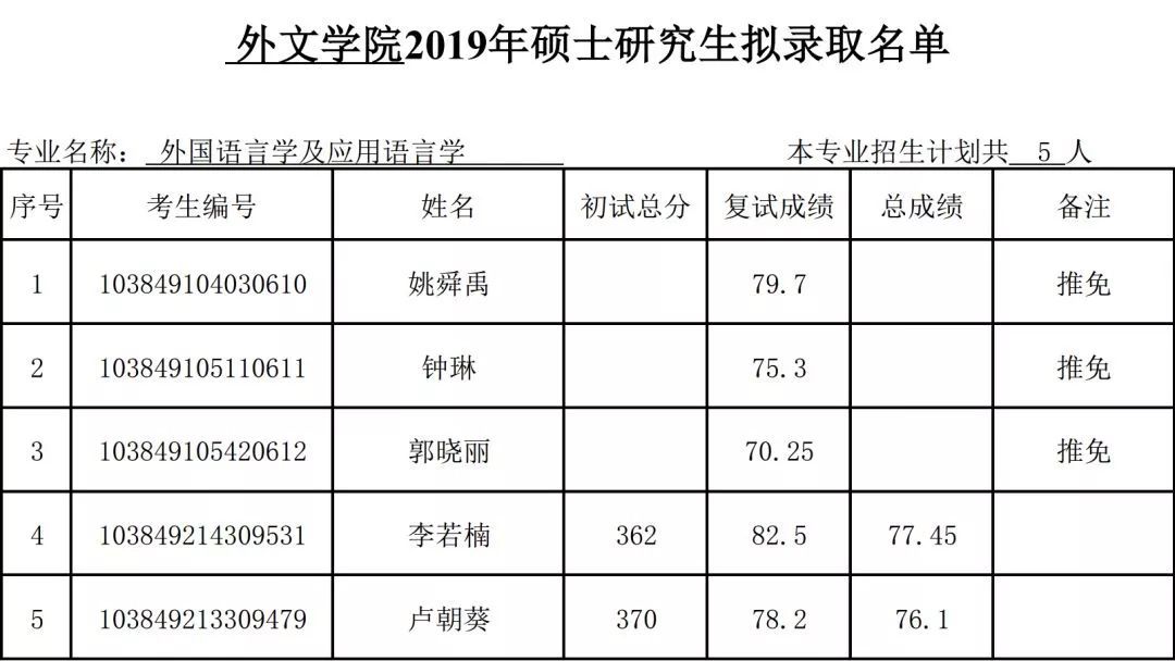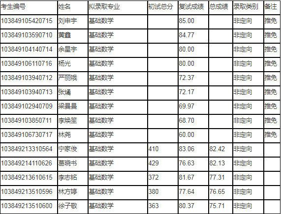 2019數(shù)學(xué)科學(xué)院碩士研究生擬錄取名單
