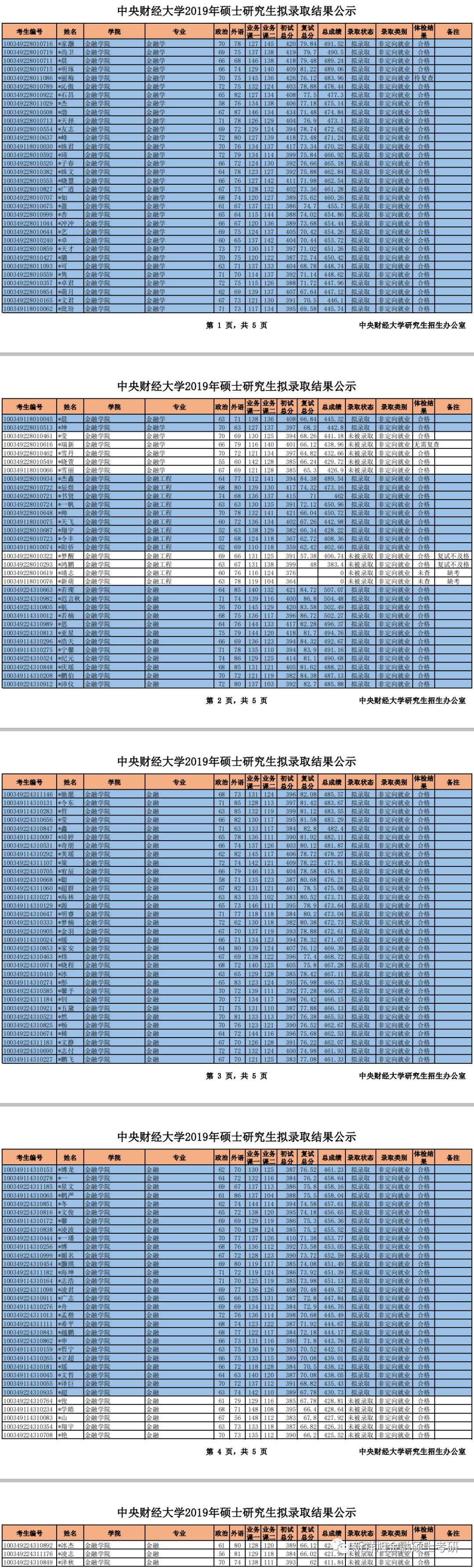 2019年中央財經大學MBA碩士研究生擬錄取名單