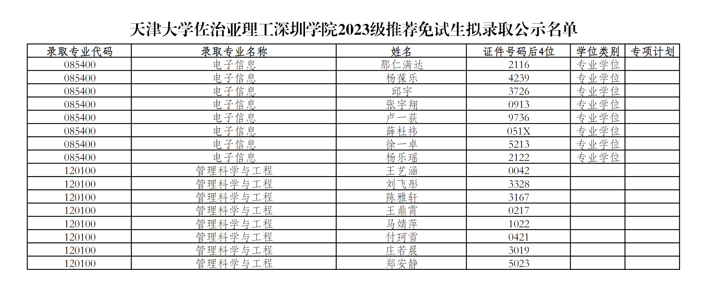 原文標(biāo)題:天津大學(xué)佐治亞理工深圳學(xué)院2023級推薦免試生擬錄取名單公示