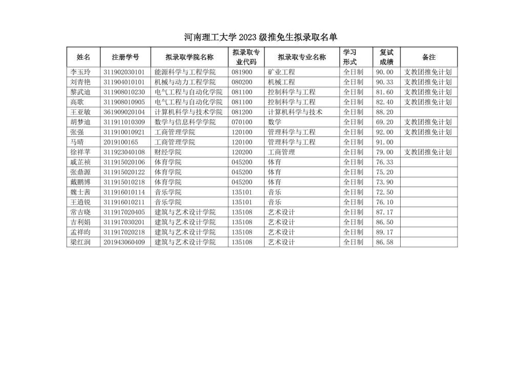 以上就是“2023推免試錄取名單:河南理工大學2023級推免生擬錄取名單公示”的內容!更多考研信息,請持續關注。
