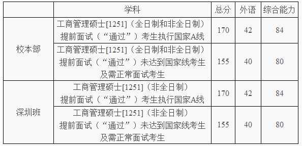 (5)正常面試考生。根據學校復試工作有關精神,考生最后錄取成績按初試成績+復試筆試成績+復試面試成績三者之和,在學科內從高分到低分錄取。考生最后總分相同時,按初試總分排序,初試總分相同時按聯考綜合能力分數排序。全日制和非全日制考生單獨排序錄取。