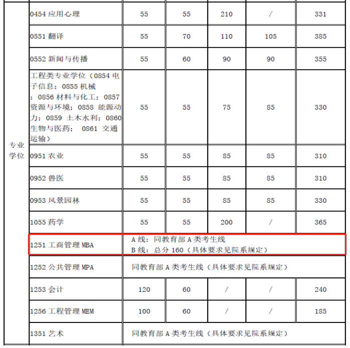 上海交通大學大學2020年MBA復試基本分數線: A線175/88/44