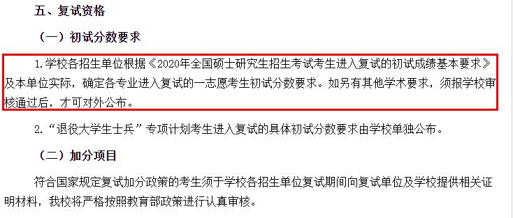 2020年全國碩士研究生招生考試考生進入復試的初試成績基本要求(專業學位類)A類175/44/88
