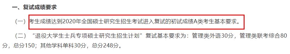 2020年全國碩士研究生招生考試考生進入復試的初試成績基本要求(專業學位類)A類175/44/88