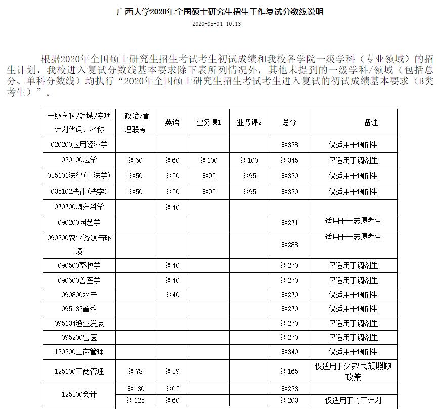 原文標題:廣西大學2020年全國碩士研究生招生工作復試分數線說明