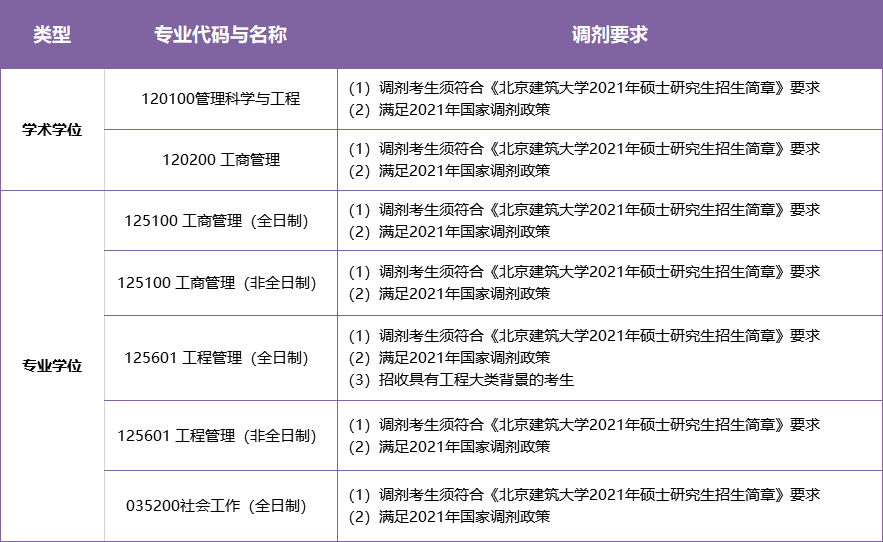 以上就是小編整理“2021考研調劑:北京建筑大學2021年城市經濟與管理學院碩士研究生調劑通知”的全部內容,想了解更多調劑信息,請持續關注本網站。