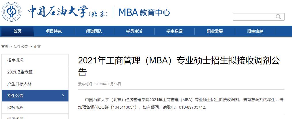 以上就是“2021MBA調(diào)劑:中國石油大學(xué)(北京)2021年工商管理(MBA)專業(yè)碩士招生擬接收調(diào)劑公告”,更多相關(guān)信息,請持續(xù)關(guān)注本網(wǎng)站!