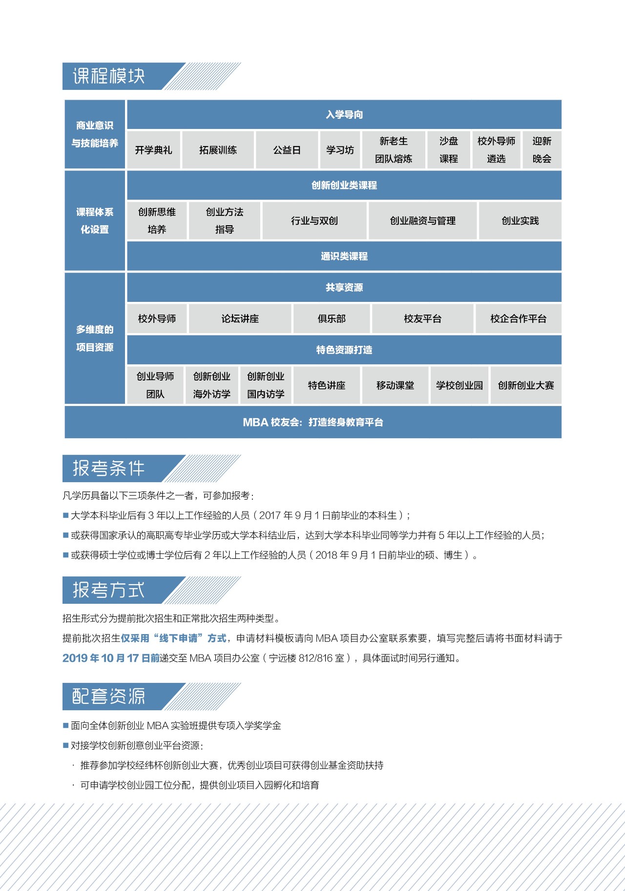 2020年對外經濟貿易大學國際商學院創新創業MBA實驗班招生簡章