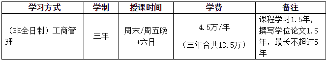 在職學習,每周末集中上課或每月周五晚+周六日集中上課結合;采用學分制,課程學分5年內滾動有效。