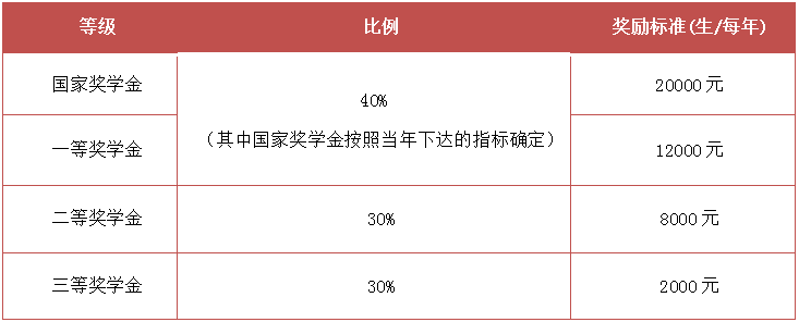 表二:全日制碩士研究生獎學(xué)金獎勵標(biāo)準(zhǔn)(定向除外)