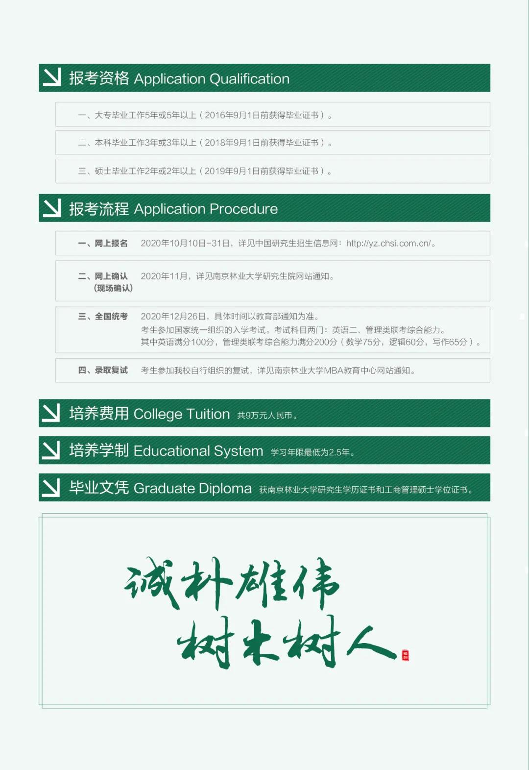 以上就是“2021MBA招生簡章:南京林業(yè)大學(xué)2021年工商管理碩士(MBA)招生簡章”的內(nèi)容了,更多考研信息,請持續(xù)關(guān)注,預(yù)祝大家考研成功!