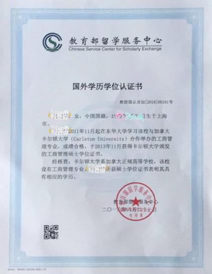 學位:加拿大卡爾頓大學頒發工商管理碩士學位(MBA)證書。