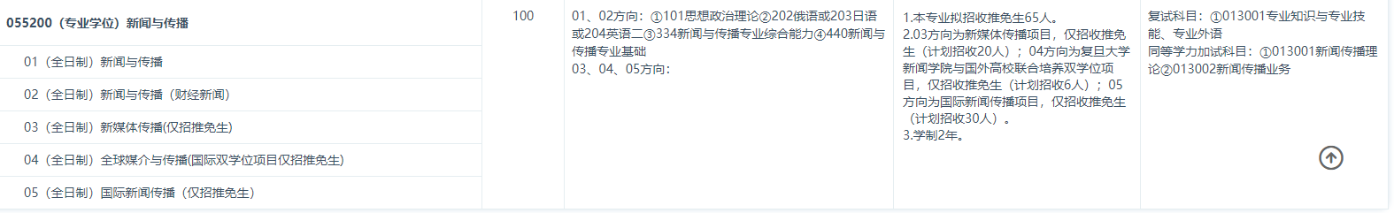 以上是“2021MJC專業(yè)目錄:復旦大學2021新傳專碩(MJC)考研專業(yè)目錄”的全部內(nèi)容,有需要趕緊記下來!考研必勝!