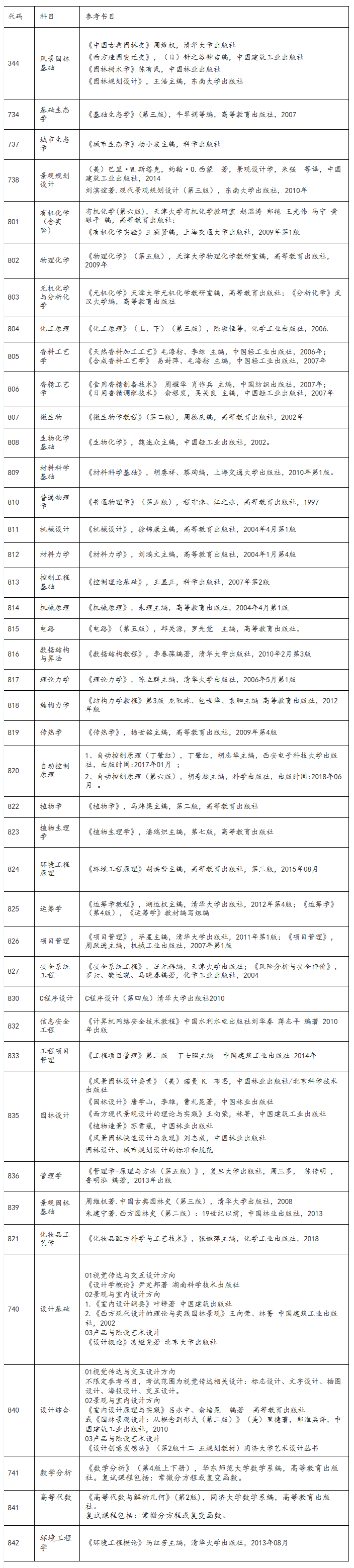 上海應用技術大學2020年碩士研究生招生入學考試參考書目