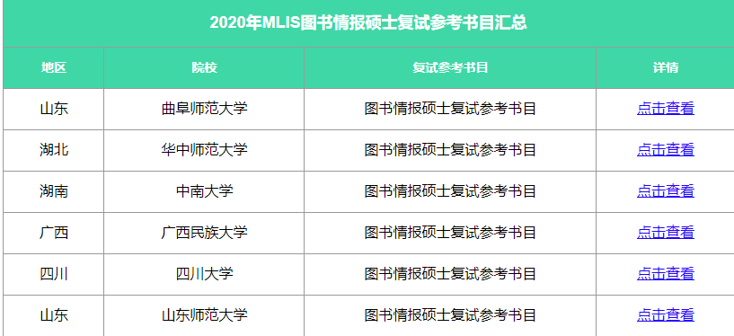 復試參考書目對大家的復試準備是十分有幫助的,以上就是“2020MLIS復試參考書目 | 華中師范大學2020圖書情報碩士(125500)復試參考書目”的全部內(nèi)容。更多院校的圖書情報碩士復試參考書目匯總點擊下圖,了解更多,祝您考研成功!