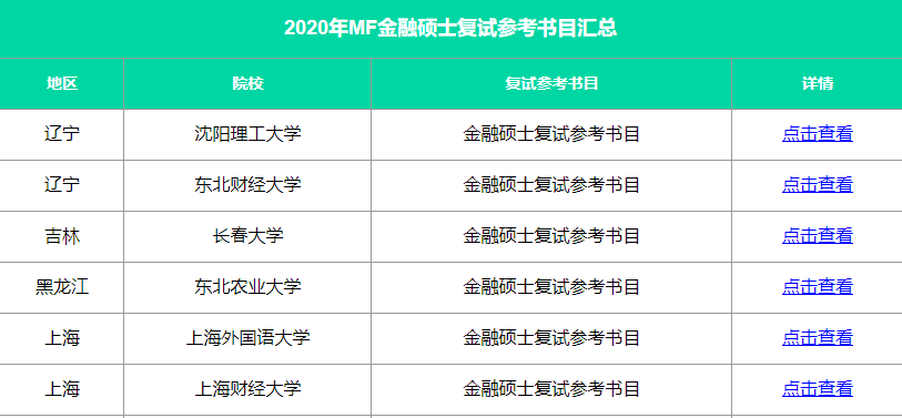 復試參考書目對大家的復試準備是十分有幫助的,以上就是“2020MF復試參考書目 | 吉林財經(jīng)大學2020MF金融碩士復試參考書目”的全部內(nèi)容。 更多院校的金融碩士復試參考書目匯總點擊下圖,了解更多,祝您考研成功!