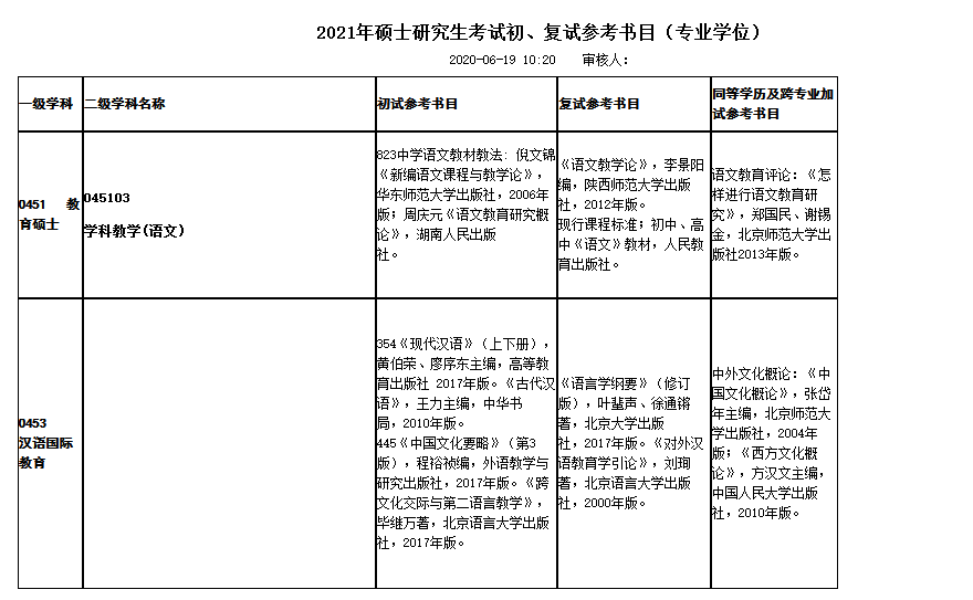 原文標題:文學院2021年碩士研究生考試初、復試參考書目(專業學位)