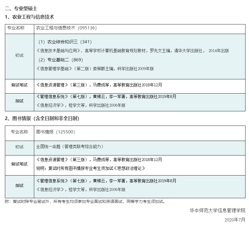 以上就是“2021考研參考書目:華中師范大學信息管理學院2021級碩士研究生入學考試參考書目”的全部內容!更多2021考研院校參考書目等干貨,盡在研線網