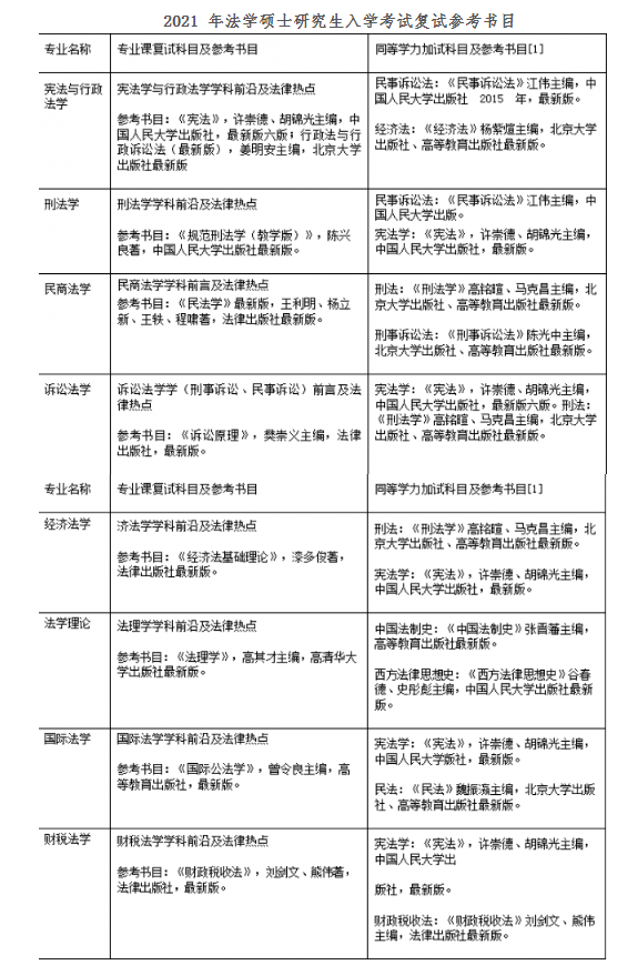 2021考研參考書目:江西財經大學法學院法學碩士研究生入學考試復試參考書目”的全部內容!更多2021考研