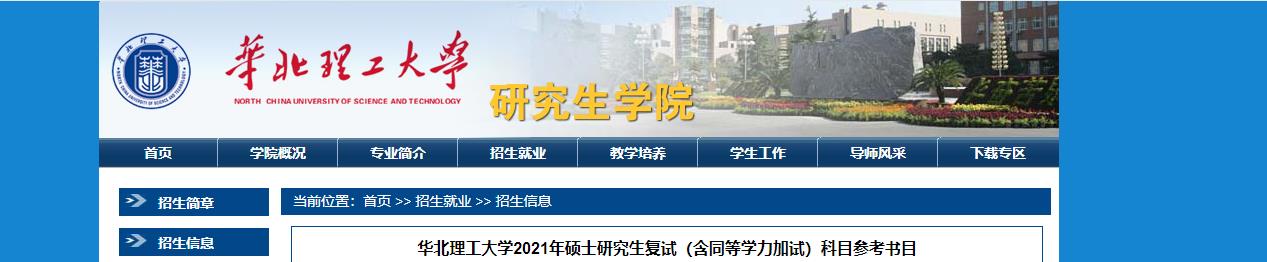 以上就是“2021考研參考書目:華北理工大學2021年碩士研究生復試(含同等學力加試)科目參考書目”的全部內容!更多2021考研院校參考書目等干貨,盡在研線網!