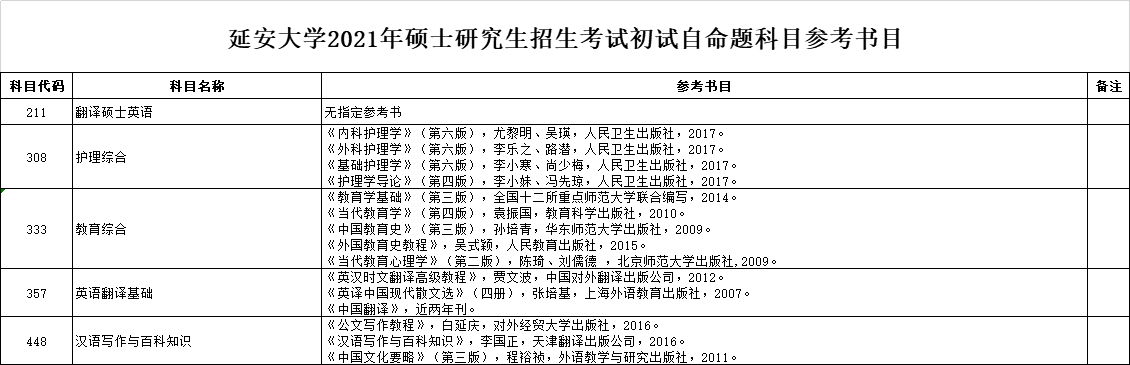 以上就是“2021考研參考書目:延安大學2021年碩士研究生招生考試初試自命題科目參考書目”的全部內容!更多2021考研院校參考書目等干貨,盡在研線網!