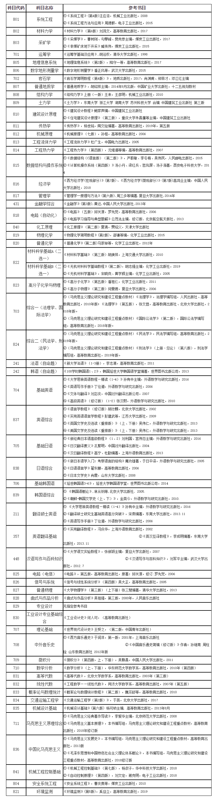 原文標題:山東科技大學2021年碩士研究生招生考試初試參考書目