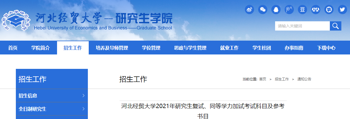 原文標題:河北經貿大學2021年研究生復試、同等學力加試考試科目及參考書目