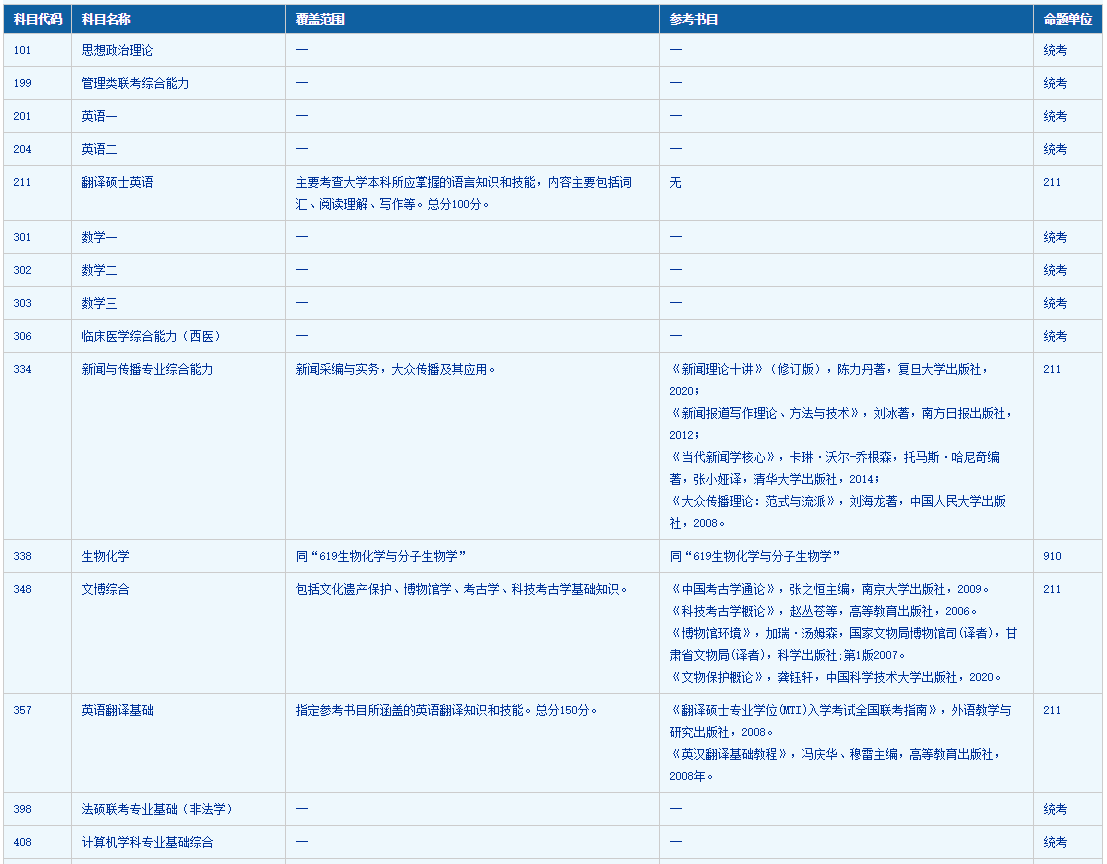 原文標題:2021自命題科目覆蓋范圍及參考書目