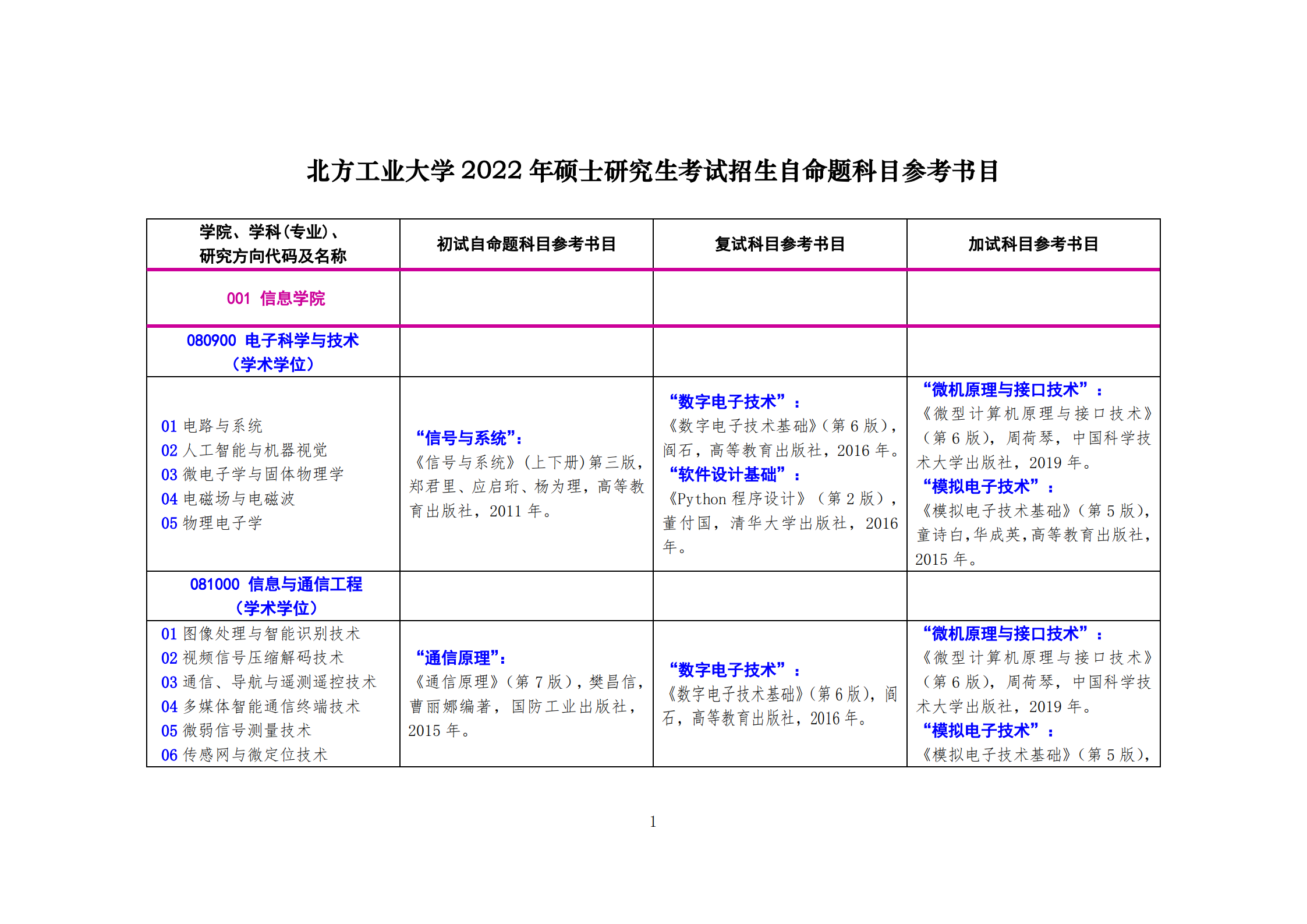 原文標題:北方工業大學2022年碩士研究生考試招生自命題科目參考書目