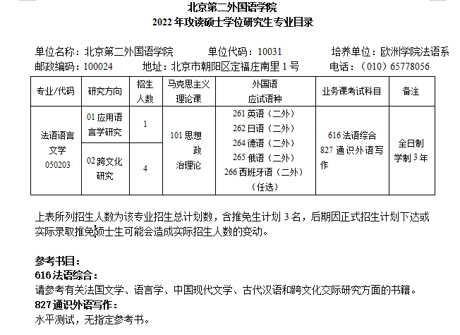 以上就是“2022考研參考書目:北京第二外國語學院2022年研究生招生考試參考書目”的內容,更多考研信息,請持續關注本網站。