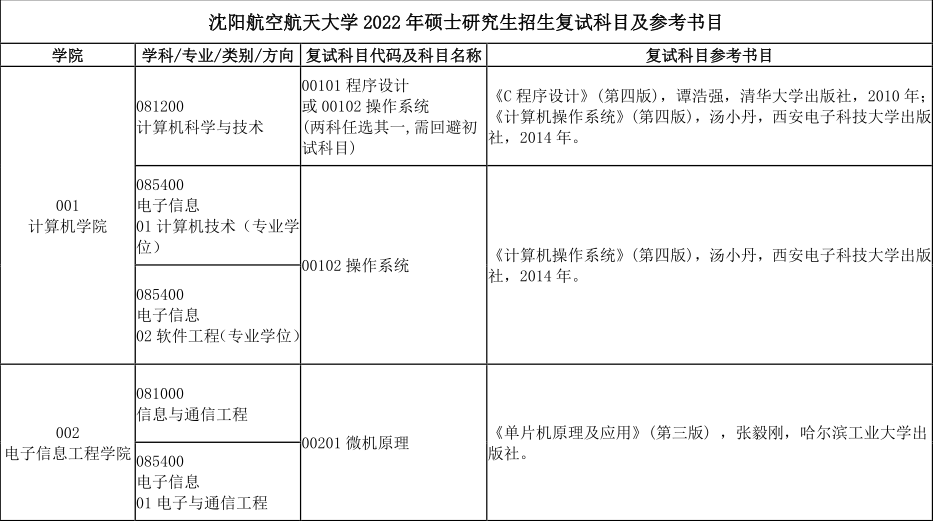 原文標題:沈陽航空航天大學2022年碩士研究生招生復試科目及參考書目