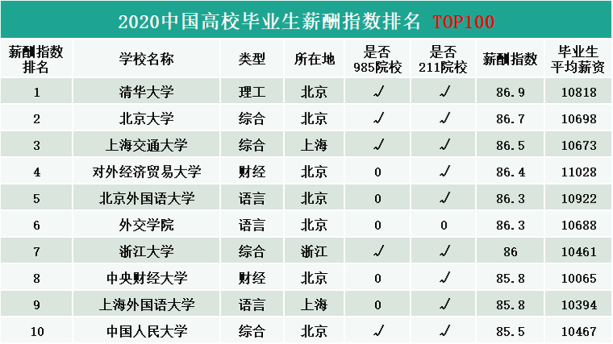畢業生的平均薪酬,能夠從一定程度上反映出就業市場對于高校培養質量的認可程度,也是考生在選擇就讀高校時的重要參考。