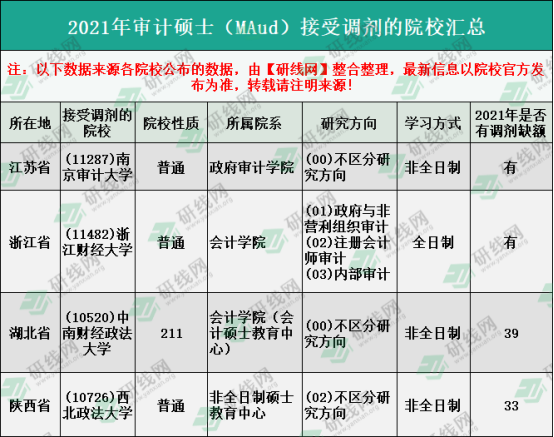 二、2021年審計(jì)碩士接受調(diào)劑的部分院校匯總