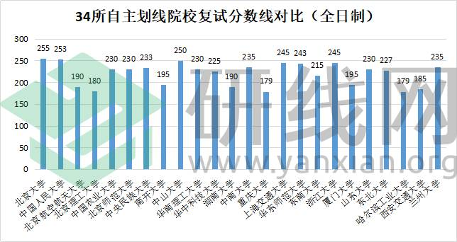 如上圖所示:2021年34所自主劃線院校中招收全日制會計(jì)碩士的24所院校中,復(fù)試線TOP3分別為北京大學(xué)255分、中國人民大學(xué)253分、以及中山大學(xué)250分,有8所院校復(fù)試分?jǐn)?shù)線低于200分,3所院校復(fù)試分?jǐn)?shù)線在200-230分,其余13所院校復(fù)試分?jǐn)?shù)線均在230分以上。總體來說,復(fù)試分?jǐn)?shù)線較高!