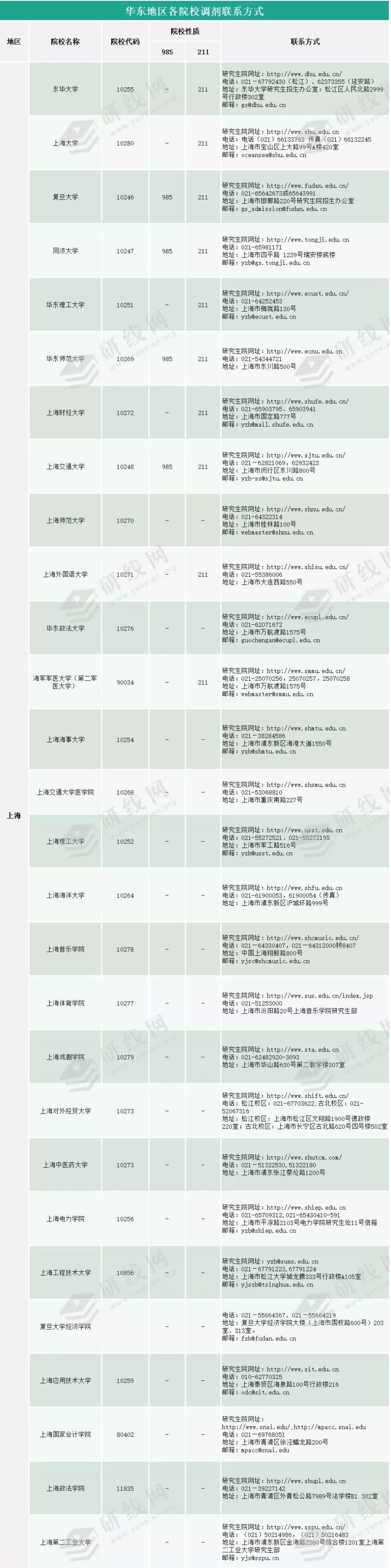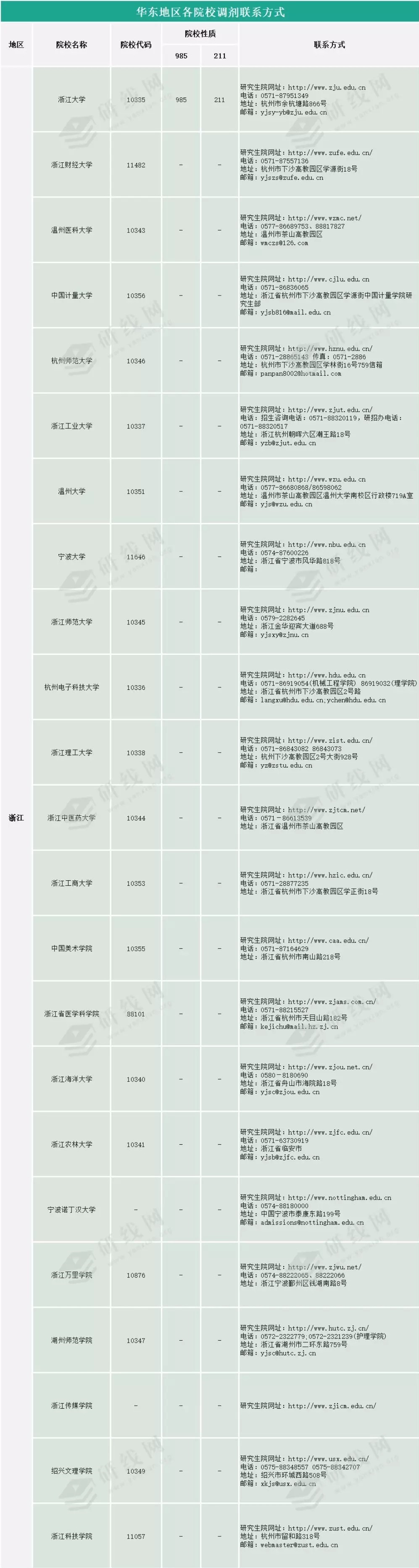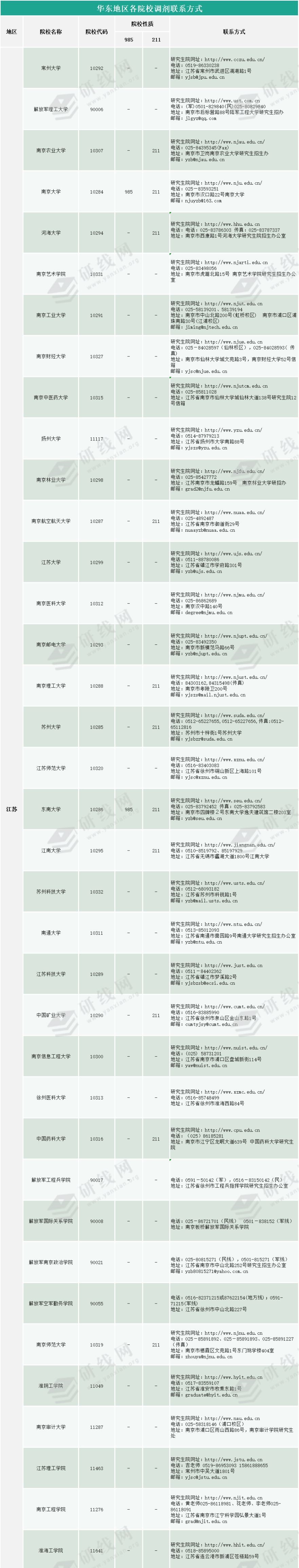 華東地區(qū)各院校調(diào)劑聯(lián)系方式查詢