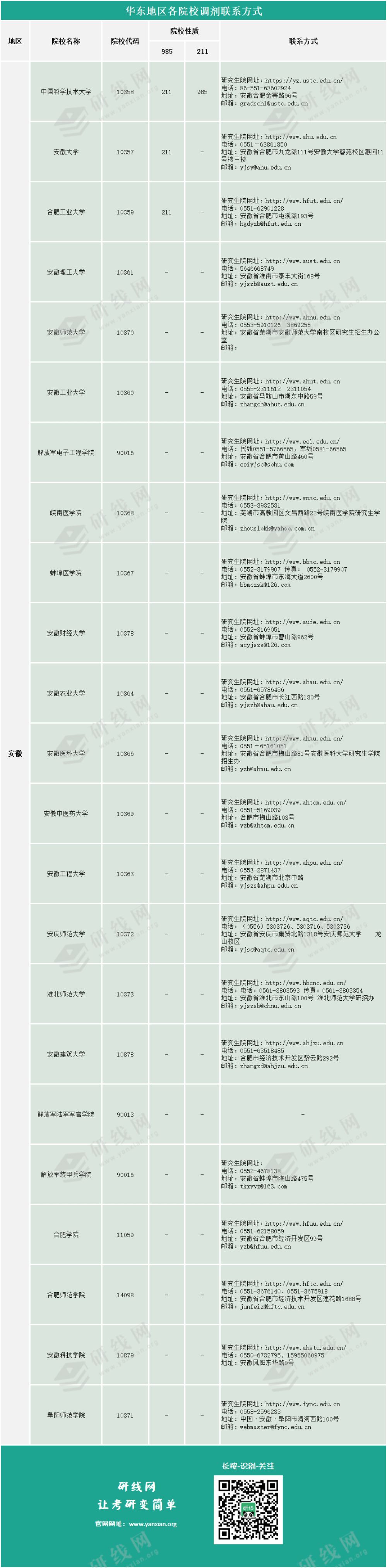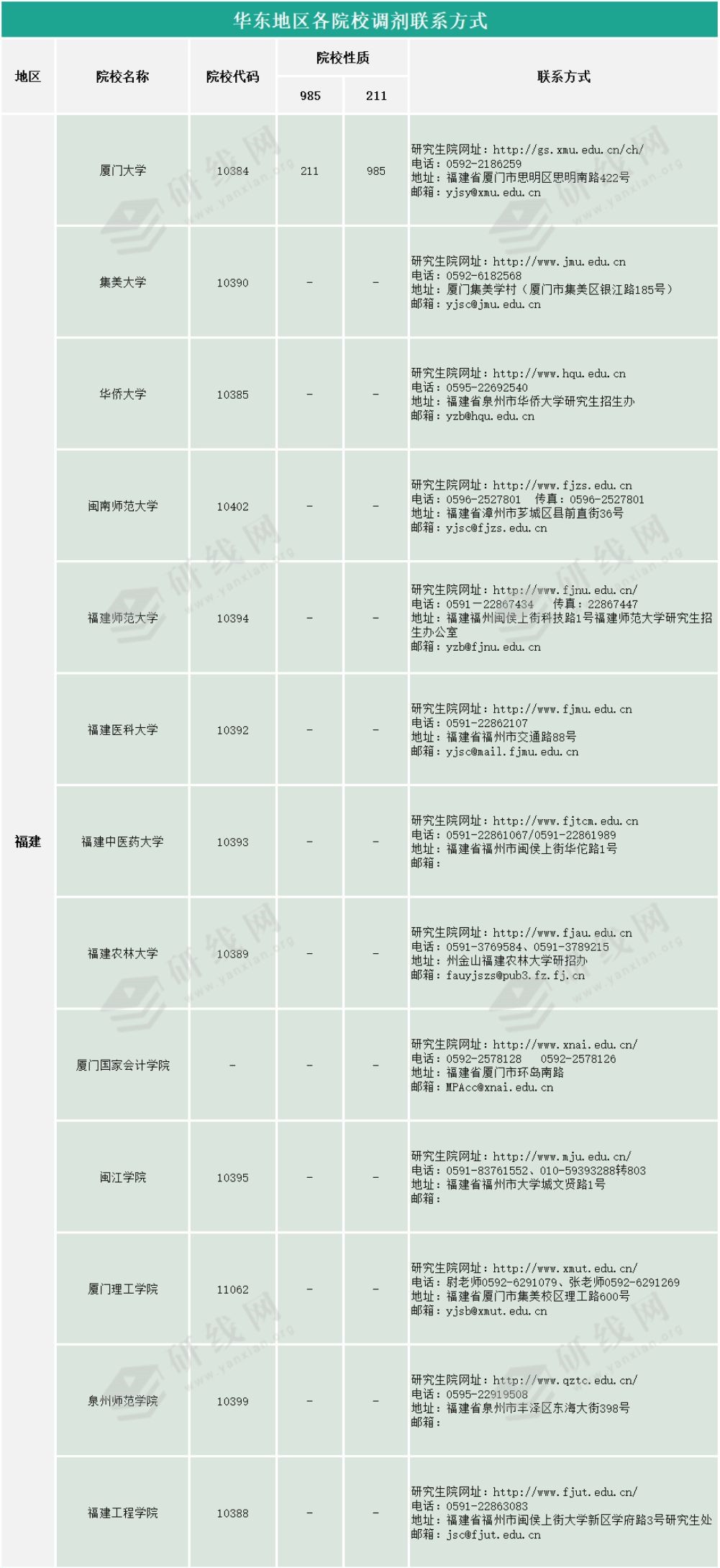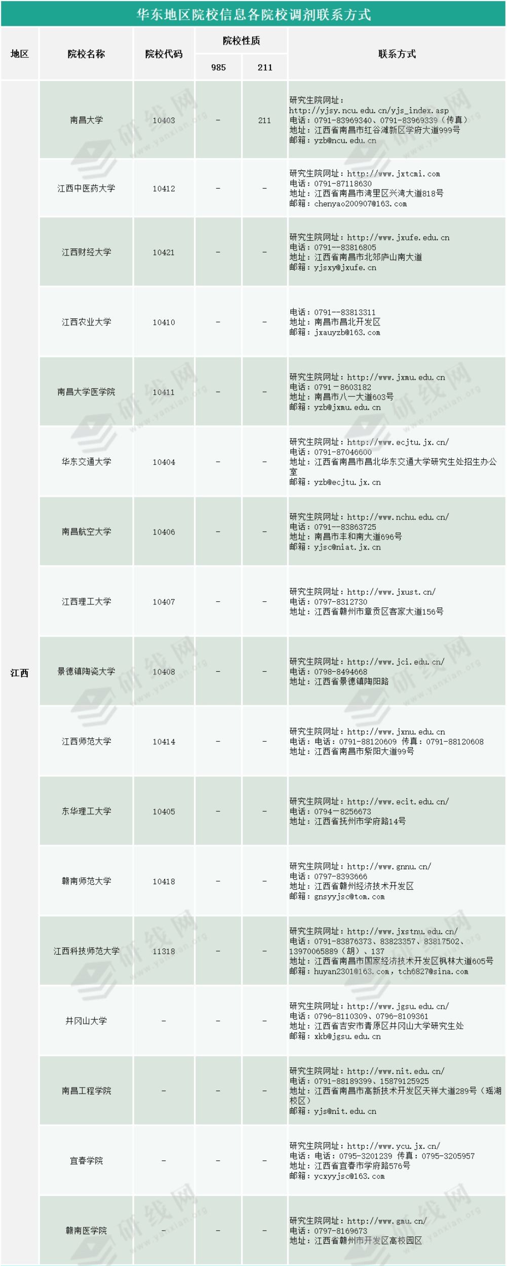 華東地區(qū)各院校調(diào)劑聯(lián)系方式查詢