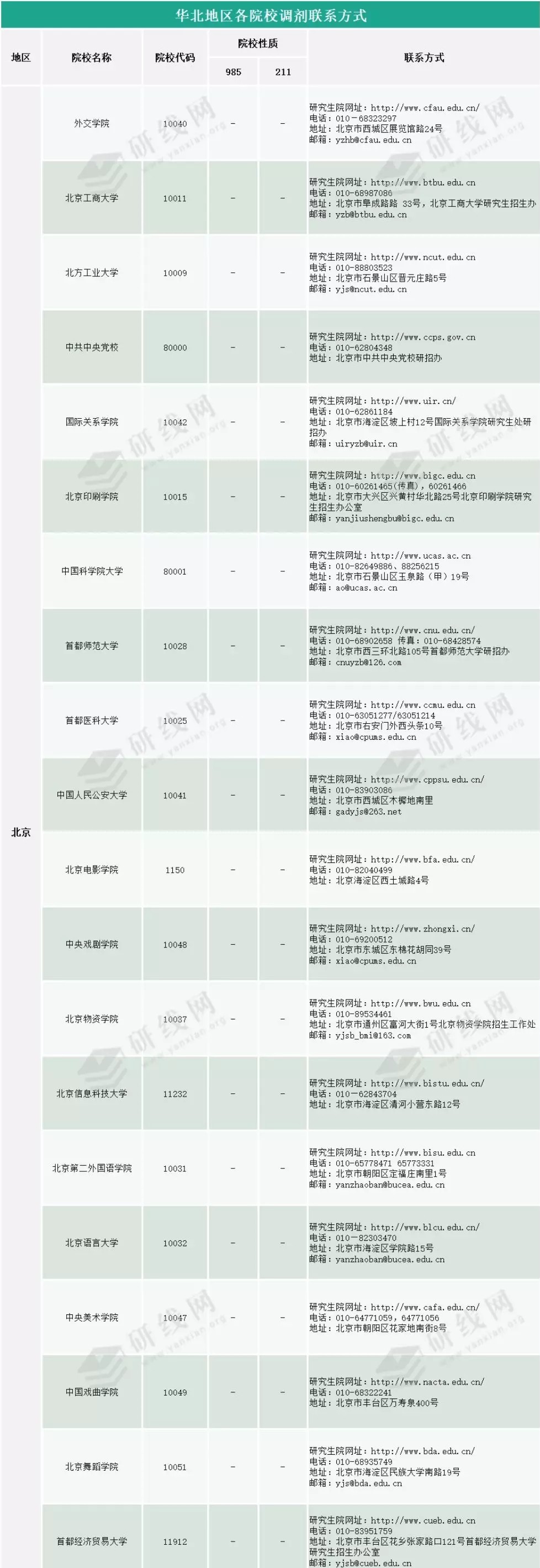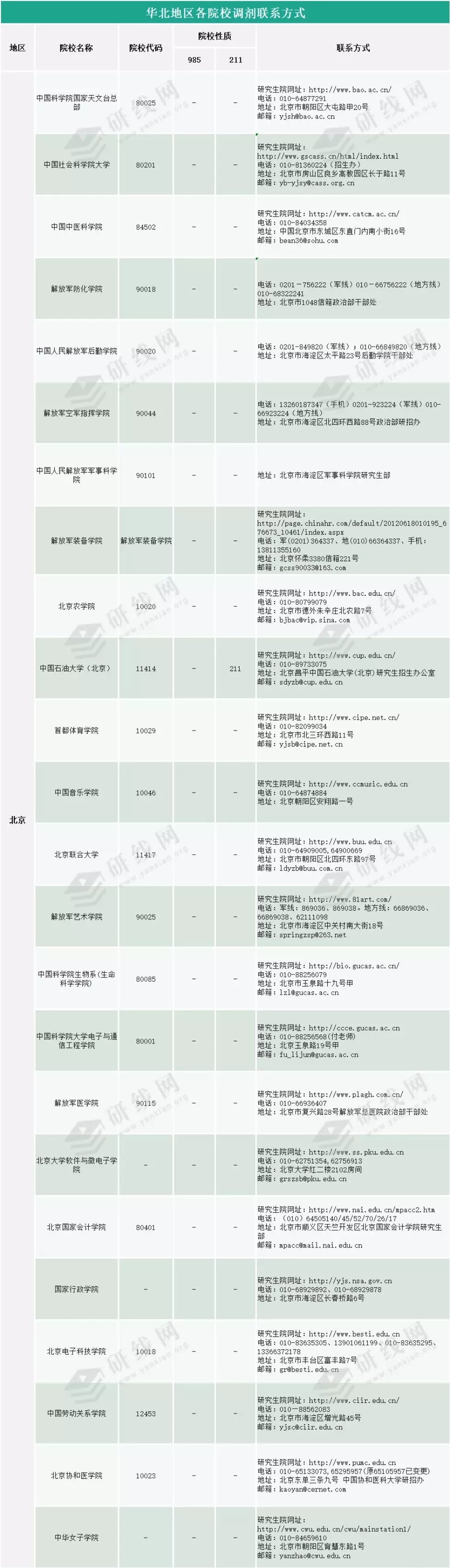 華北地區(qū)院校調(diào)劑聯(lián)系方式查詢