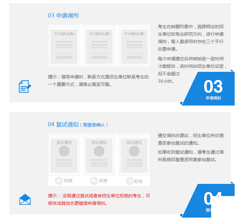 以上是研線小編整理的2019年全國(guó)碩士研究生招生網(wǎng)上調(diào)劑流程(考生),希望對(duì)考生有幫助!