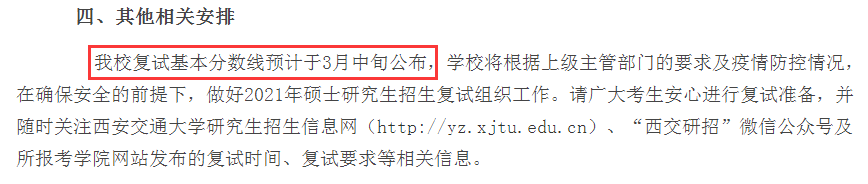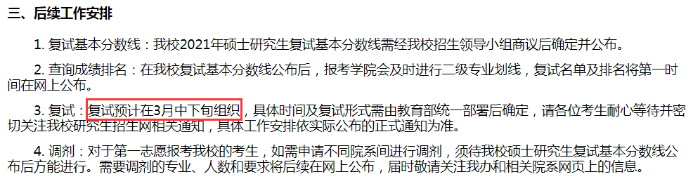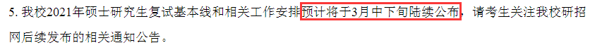 我校2021年碩士研究生復試基本線和相關工作安排預計將于3月中下旬陸續公布。