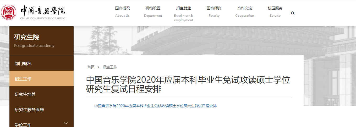 以上就是“中國音樂學院2020年應屆本科畢業生免試攻讀碩士學位研究生復試日程安排”的全部內容!更多2020年推薦免試內容,盡在“推薦免試”欄目!