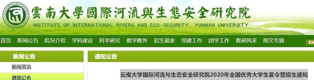 原文標題:云南大學國際河流與生態安全研究院2020年全國優秀大學生夏令營招生通知
