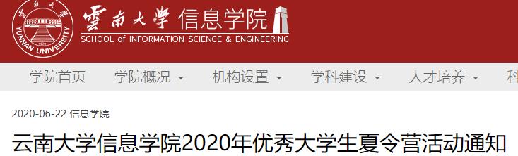 為加深大學生對云南大學信息學科的了解,感受科研氛圍,洞悉信息學科前沿動態,提升大學生科研素養,促進信息學科大學生交流互動,廣泛吸納優秀本科生到云南大學信息學院深造,云南大學信息學院將于2020年暑假舉辦優秀大學生暑期夏令營活動。