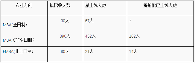 3、滿足EMBA報考條件,初試成績同時符合第一志愿專業(yè)的學(xué)校復(fù)試分數(shù)線和國家A類分數(shù)線的公共管理、會計專業(yè)的考生可申請調(diào)劑至EMBA(非全日制)