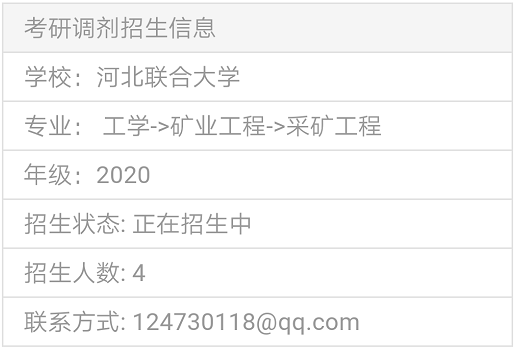 以上就是“2020考研調(diào)劑信息:華北理工大學(xué)招收礦業(yè)工程相關(guān)專業(yè)碩士調(diào)劑生”,的全部?jī)?nèi)容,2020考研全國(guó)調(diào)劑綜合服務(wù)平臺(tái)正式上線!三大功能亮點(diǎn),幫你輕松調(diào)劑!