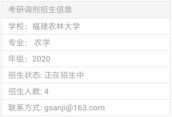 以上就是“2020考研調劑信息:福建農林大學農學專業招收碩士調劑生”,的全部內容,2020考研全國調劑綜合服務平臺正式上線!三大功能亮點,幫你輕松調劑!