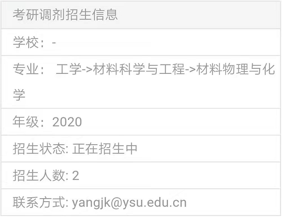 以上就是“2020考研調劑信息:燕山大學材料物理與化學專業接收碩士調劑生”,的全部內容,2020考研全國調劑綜合服務平臺正式上線!三大功能亮點,幫你輕松調劑!