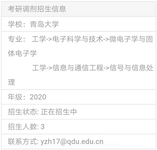 以上就是“2020考研調劑信息:青島大學電子信息學院接收碩士調劑生”,的全部內容,2020考研全國調劑綜合服務平臺正式上線!三大功能亮點,幫你輕松調劑!