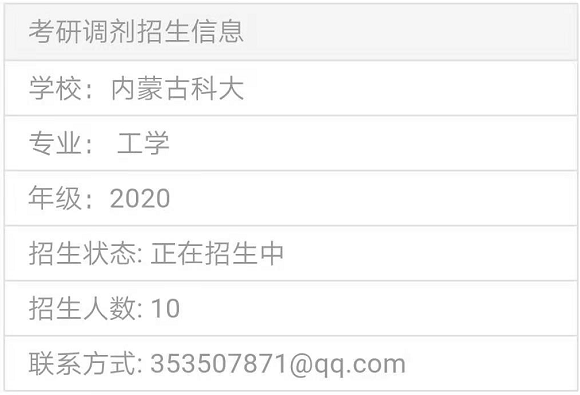 以上就是“2020考研調劑信息:內蒙古科技大學工學專業接收碩士調劑生”,的全部內容,2020考研全國調劑綜合服務平臺正式上線!三大功能亮點,幫你輕松調劑!
