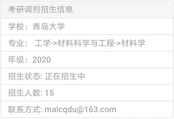 以上就是“2020考研調劑信息:青島大學接收材料、化學背景的碩士調劑生”,的全部內容,2020考研全國調劑綜合服務平臺正式上線!三大功能亮點,幫你輕松調劑!
